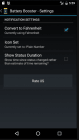 Shows your battery charge level (percent) as an icon in your status bar, with temperature, health, voltage, and time since plugged / unplugged in the notification area. It also has user-configurable alarms, logs, and widgets.
