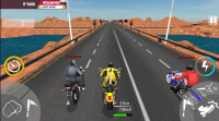 The bike attack race: stunt rider allows you to boost your super bike riding skills by giving you real challenging highway racing missions. Strap your helmet for the breathtaking and adventurous super bike championship rally which is being held on the asphalt tracks of city highways. Whizz through the extreme traffic rush like a real stunt master and beat the opponents while riding your traffic bike and win this speed bike rally in no time. You have variety of weapons to take down the rivals e.g. bullets, axes and bats. Each player has a health bar over their head which show their remaining health. You can use protective shields to save your health from the opponent’s attacks. Get the daily bonus and other bundle offers to buy and upgrade new and unique heavy bikes.