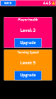- Upgrading player health and turning speed by coins