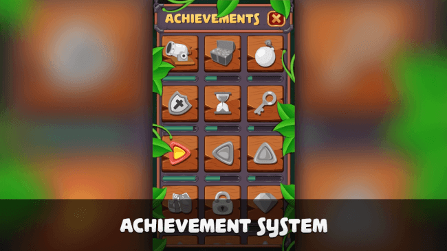 • Achievements – it is an essential part of the game. Jewel Treasure has integrated native achievement system and has more interaction with the player. Modification – all achievement parts can be changed using customize window: names, icons, descriptions. There are no programming skills required to modify or delete default achievements. If you want to add new achievement, you have to implement only one line of code in to the game code which is really easy because all our scripts are commented.