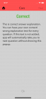 • Settings screen with options to turnoff ads(InApp purchase), turn off sound and disable explanations for questions answered