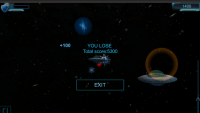 Player flies forward and needs to survive among UFO’s. Complexity will be increased gradually – new enemies appear and Asteroids become stronger and bigger. Player receives points for enemy destroying and can earn up to 3 stars reward per level. Weapon can be upgraded.