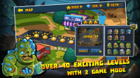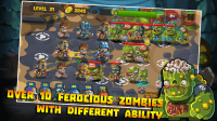 Also there are many types of zombies, each zombie also have different characteristics and ability, for example: Mad Zombie have very hight move speed, attack speed, but less health and have a very ability is you can not freeze this zombie. Freeze Zombie have very hight health, but lower move speed and attack speed and have a very terrible ability, this zombie can freeze the unit.